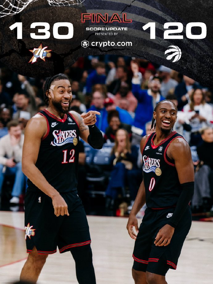 在连续输给公牛和骑士民银证券,遭遇赛季首场连败之后,76人今天在主场以130-120战胜猛龙,终结两连败,战绩来到6胜3负,暂时和雄鹿以及公牛打成平手,暂列东部第三。而猛龙4连胜被终结,战绩变成5胜5负,和老鹰打成平手,暂时排在东部第八。